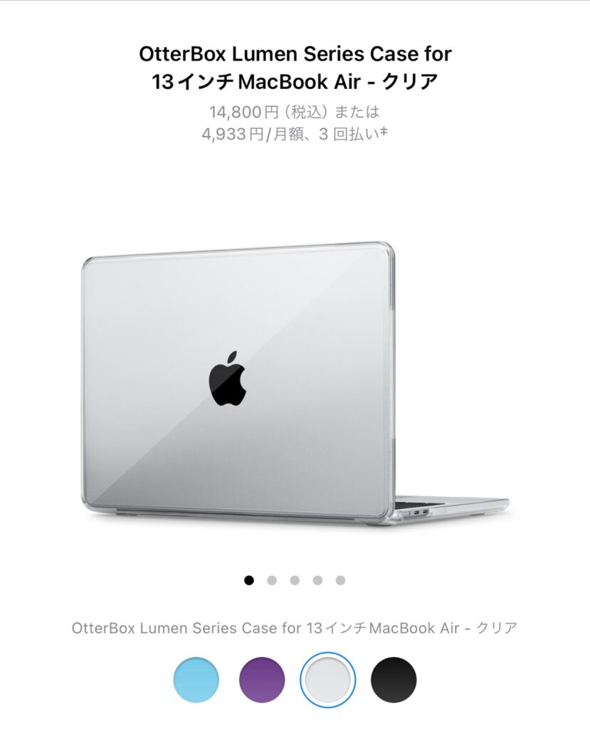 悩んだ末に、「MacBook Airに透明カバー着けるか。」という発想になりApple Storeで良さそうなケースを発注した。